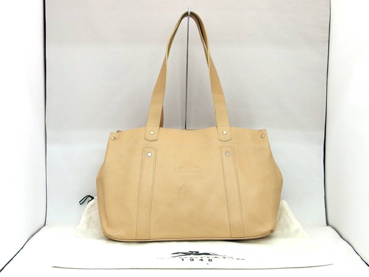 - LONGCHAMP ロンシャン レザー ベージュ トートバッグ /B6303F