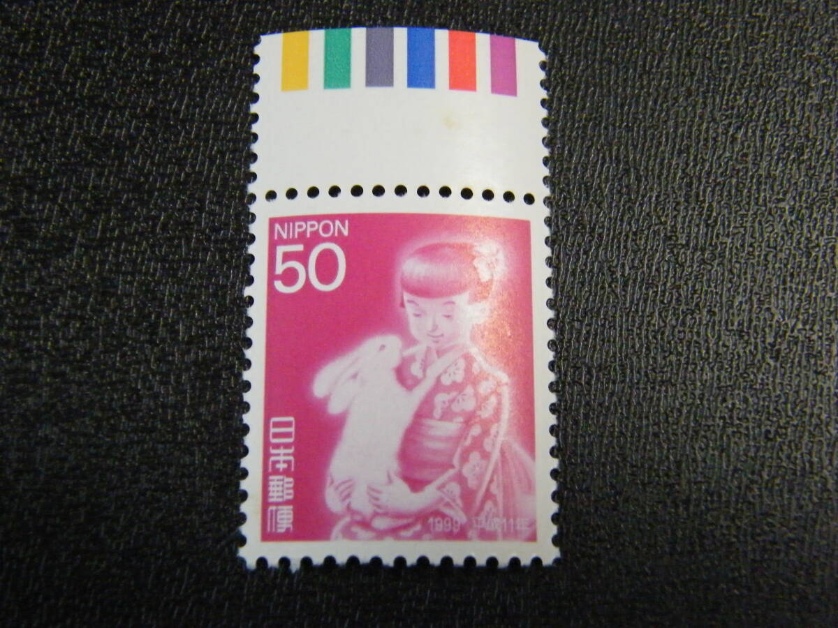 - 年賀切手発行50年小型シートからの切り出し 50円 カラーマーク上 綴じ穴無し 未使用(CM付)