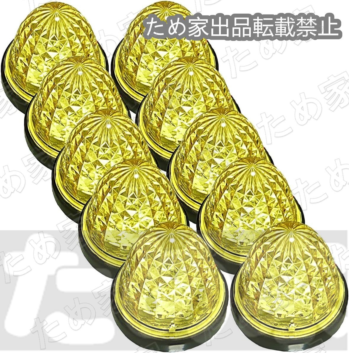 - 24V トラック用 LED マーカーランプ サイド マーカー クリスタルカット仕様 16LED 汎用 イエロー 10個