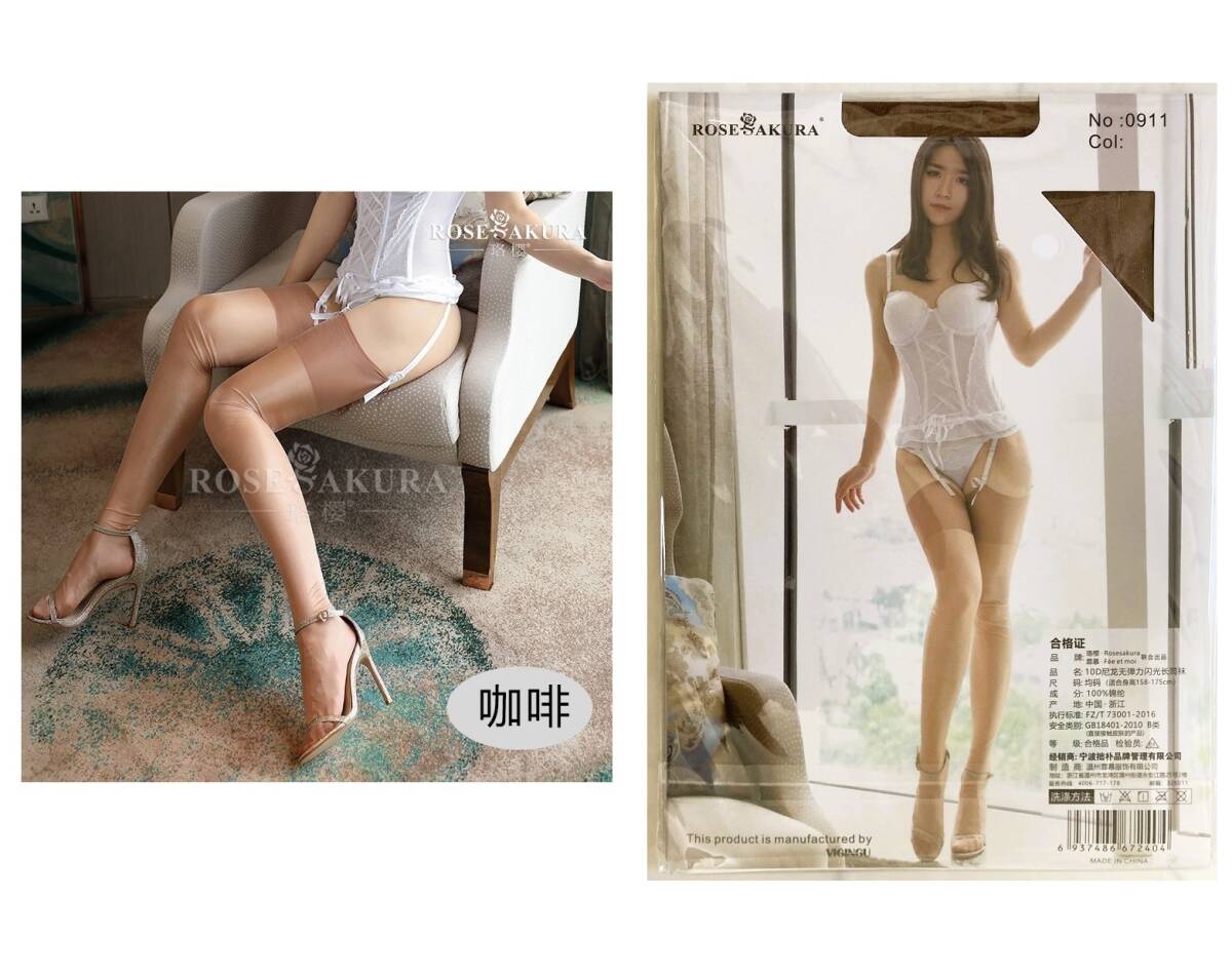 - Rosesakura/品番0911/コーヒーブラウン色 10デニール光沢 100%ナイロン/シームレスガーターストッキング