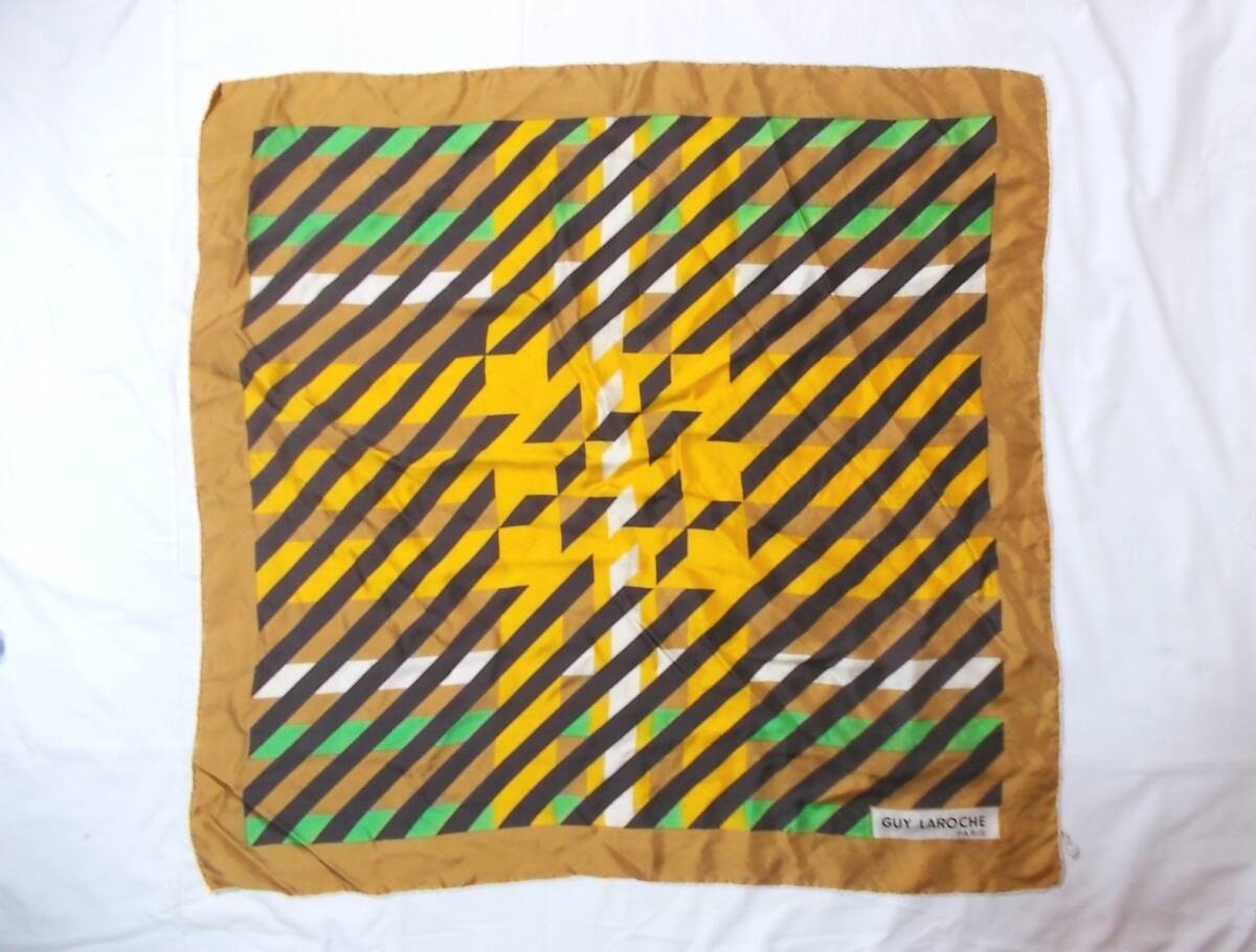 > スカーフ/バンダナ④★大判/78×76cm/シルク100%/ブラウン★GUY LAROCHE PARIS/ギ・ラロッシュ/Made in FRANCE★