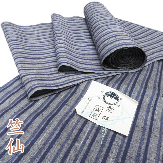 - 夏物 反物 浴衣 着物 未仕立て 新古品 木綿 カジュアル 竺仙 縦縞模様 灰色 紺系色 きもの北條 A1185-4