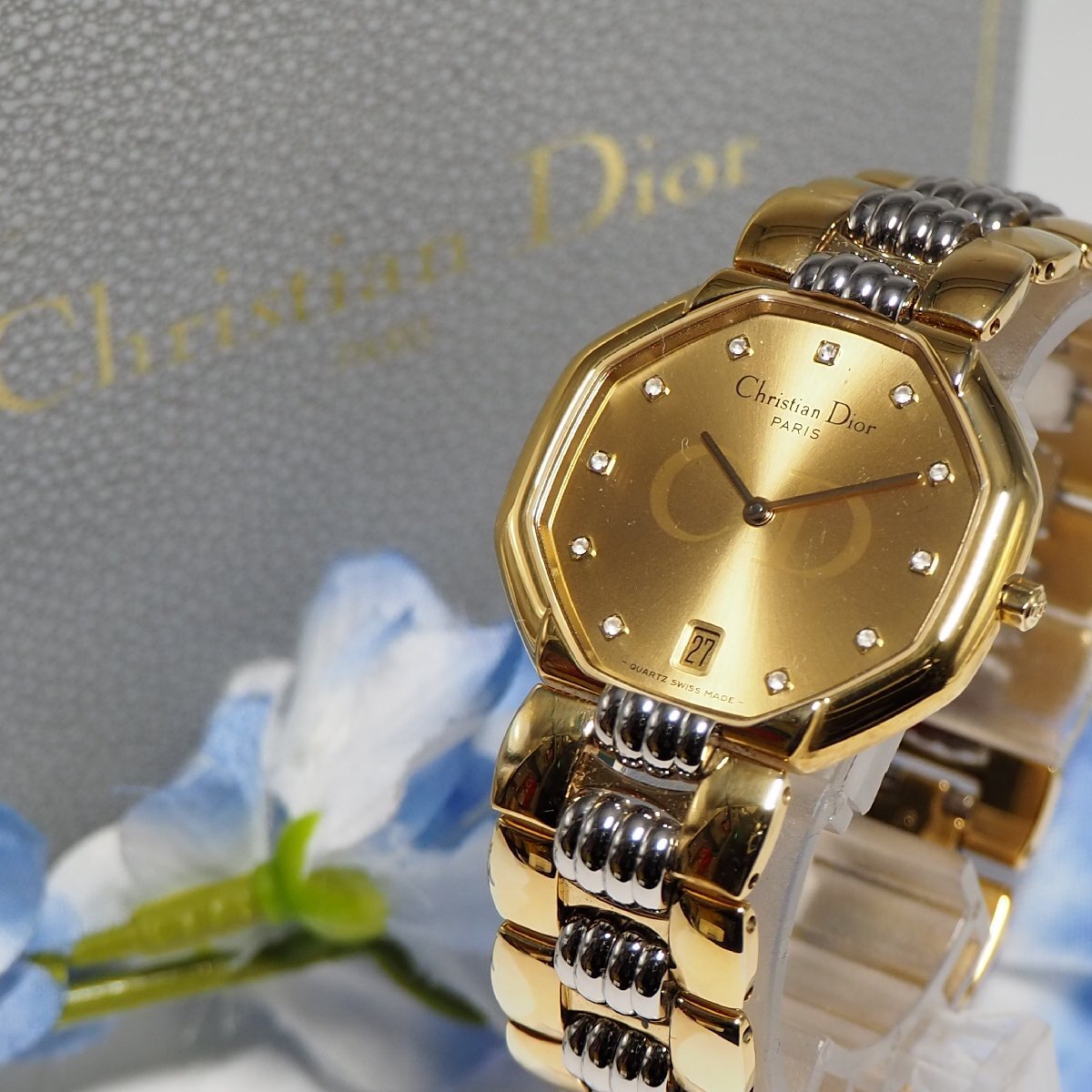 ★★★★ 美品 クリスチャンディオール DIOR オクタゴン 11Pダイヤ デイト メンズ 腕時計 コンビ 箱 F724 中古★★★★