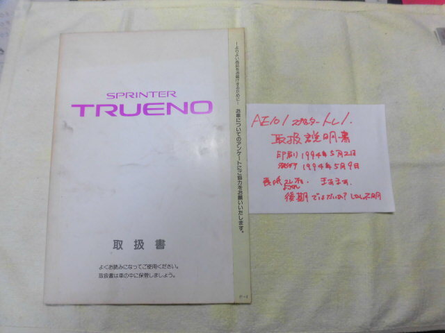 - ◆取扱説明書◆トヨタ AE101型 スプリンタートレノ 1994年5月版◆