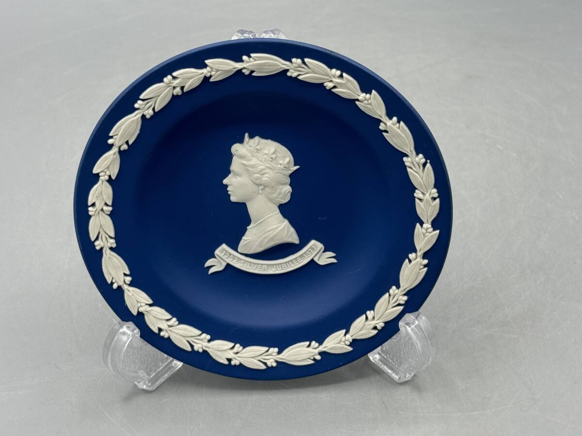 - 英国 ウェッジウッド ジャスパーウェア エリザベス女王 シルバージュビリー 飾り皿 (#-2)