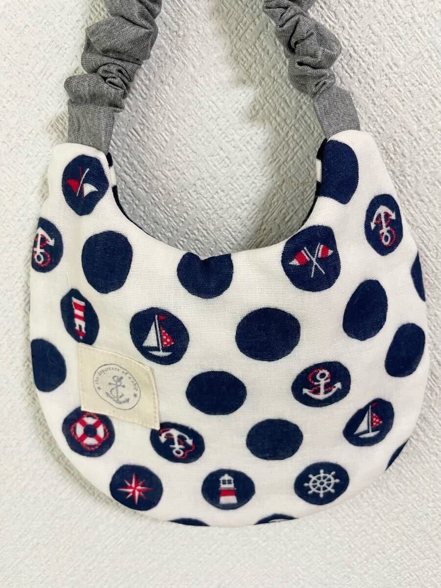 - ハンドメイド★まるにイカリ柄★よだれかけ 6重ガーゼ+ニットゴムスタイ★