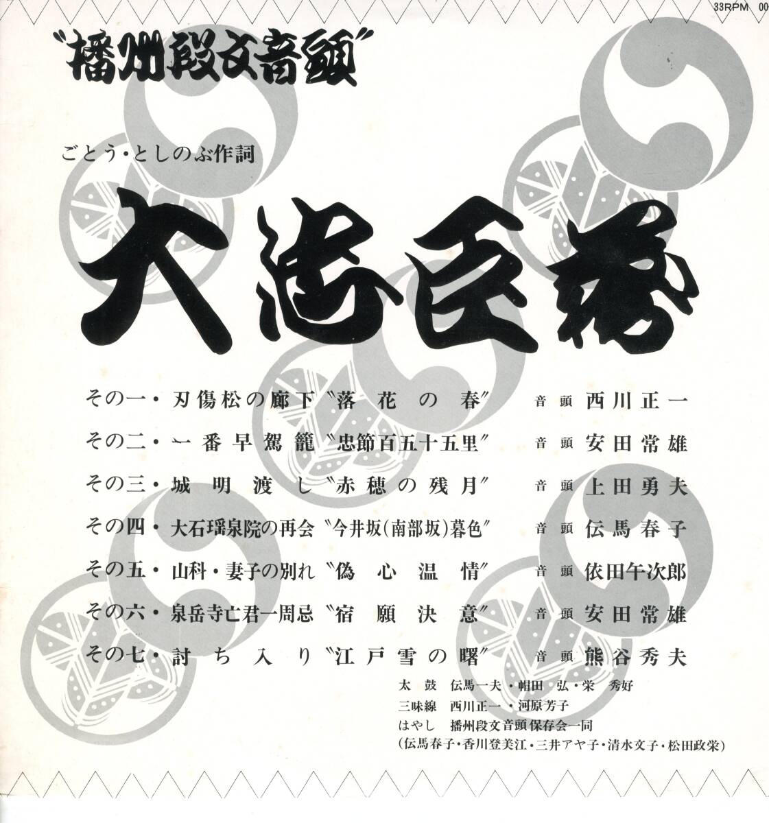 - LP デッドストック 播州段文音頭 大忠臣蔵 ごとう・しのぶ 播州赤穂浪士 刃傷松の廊下”落花の春” 討ち入り”江戸雪の曙” 他【J-1821】