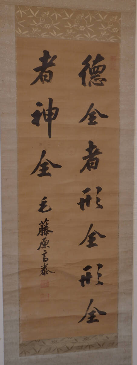 - 【大特価 お買得 掛軸】藤原高泰 書「徳全き者は形全く、形全き者 は神全し」紙本 署名落款有り 荘子 書道 道教 開運 風水 べらぼう 蔦屋