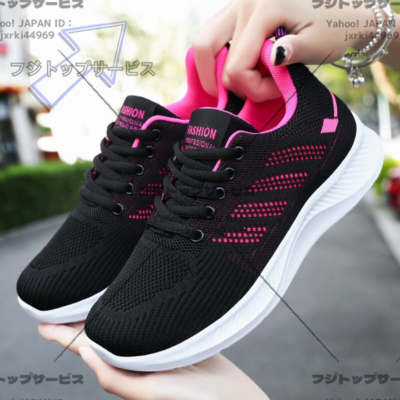> 新入荷 スニーカー レディース メッシュ レディース靴 スポーツ アウトドア 春秋 軽量 散歩シューズ 通気性 通勤 婦人靴 ピンク 23cm