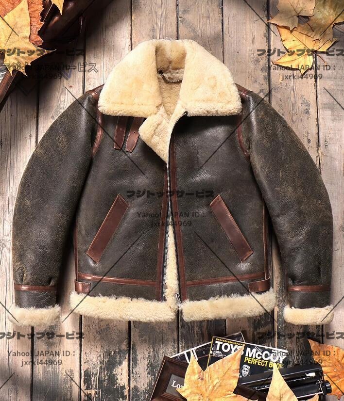 - 新入荷ムートン 羊革+馬革 毛皮一体 フライトジャケット シープスキン ヴィンテージ メンズファッション 防寒服 本革 コートM~4XL