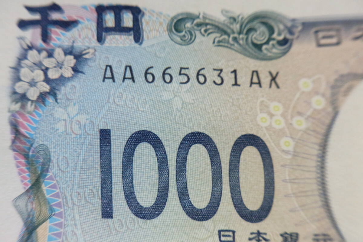 - 【新紙幣】AA−AX券 北里柴三郎 1000円 新札1枚 AA665631AX 若干の折り目あります