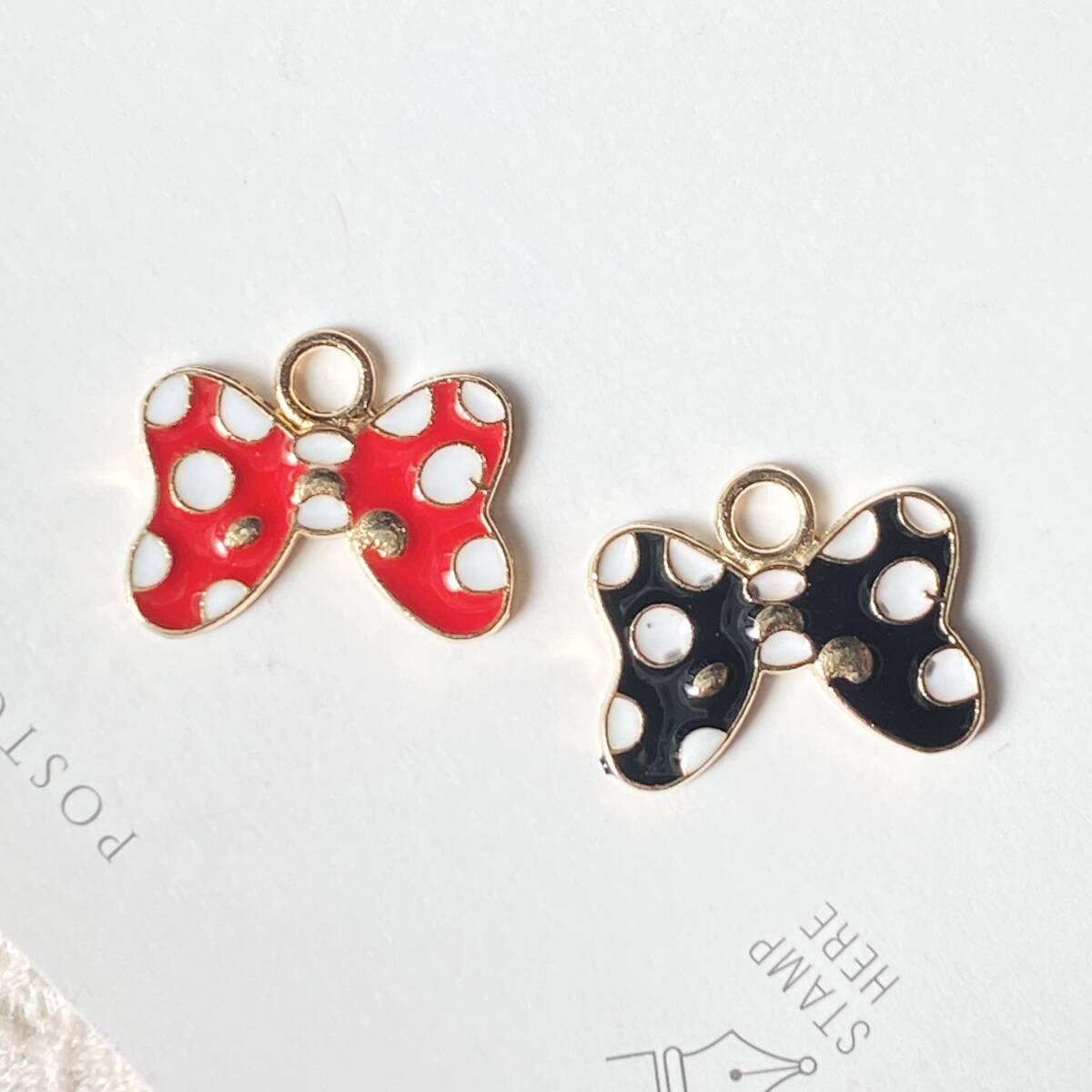 - 【16個】ドットリボン チャーム 2色有 A4-1