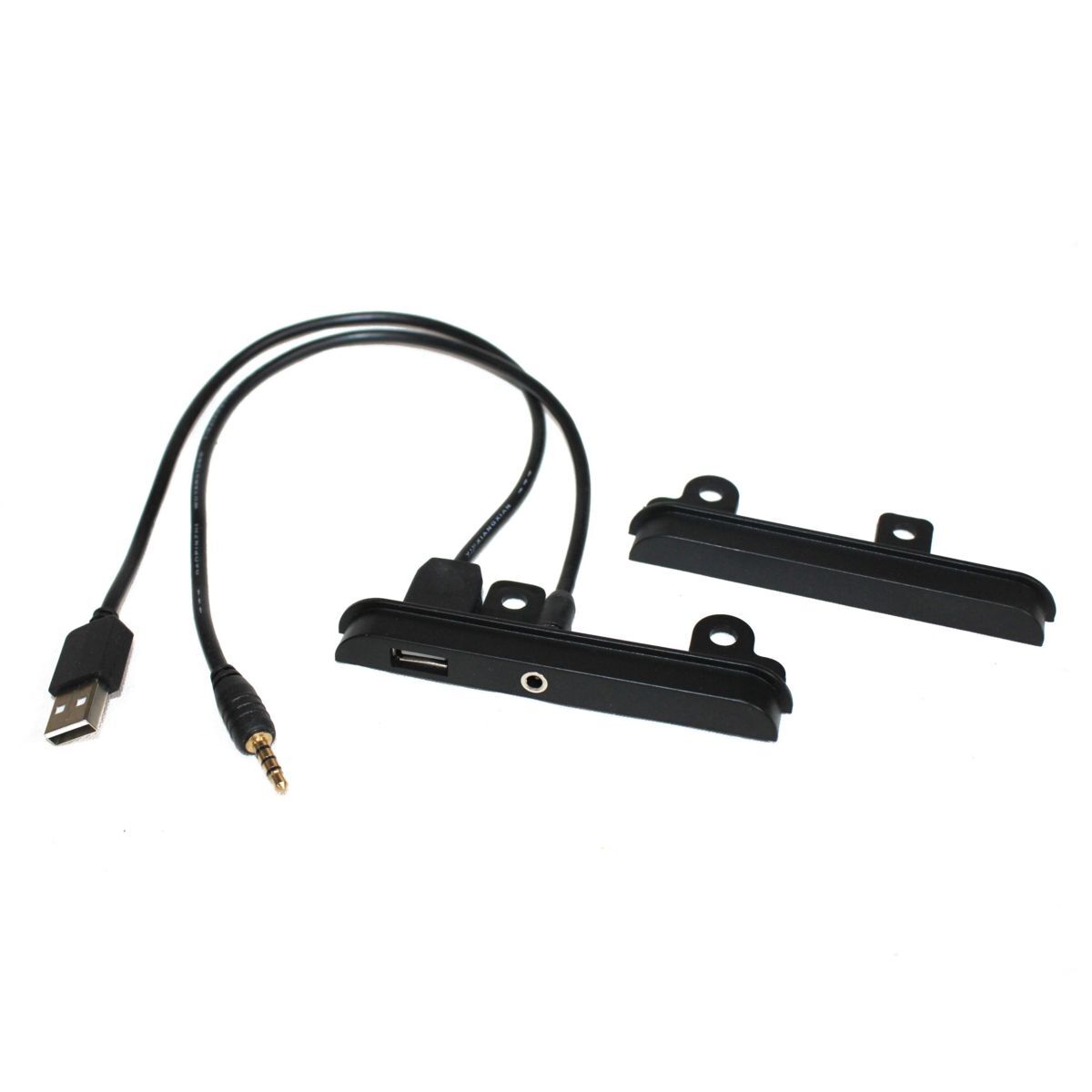 一部トヨタ車の200mmワイドサイズナビゲーションを装着可能な車種に、2DINサイズ(横幅180mm)のAV機器を装着した際、左右を塞ぐパネルにUSB/AUXを追加したユニットです。