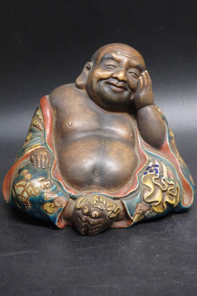 - 【友】時代 九谷焼 色絵 布袋 置物 古九谷 古美術品