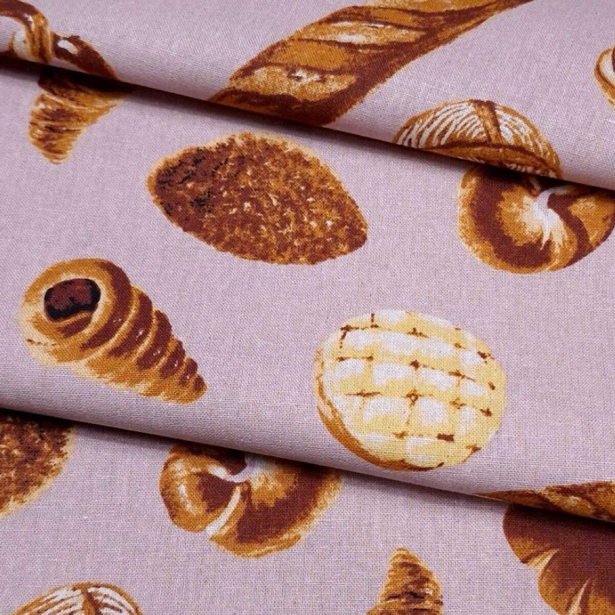 - ☆50cm☆パン柄 綿麻キャンバス くすみピンク