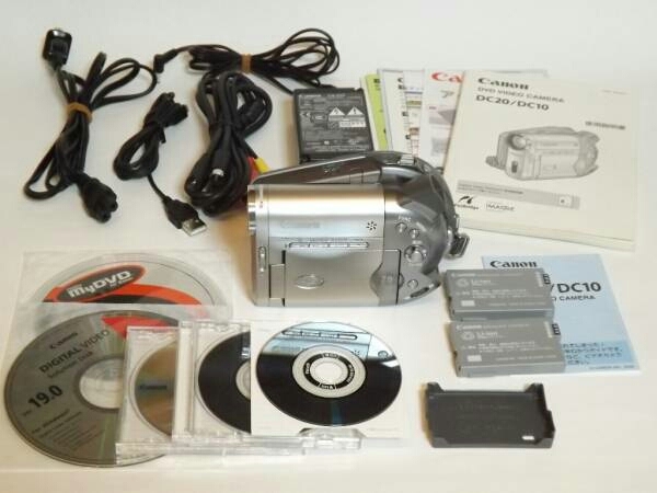 > 動作確認済CanonキャノンDVD書き込み デジタルビデオカメラDM-DC20 充電器 充電池2個DVD3枚 説明書セット 運動会 発表会
