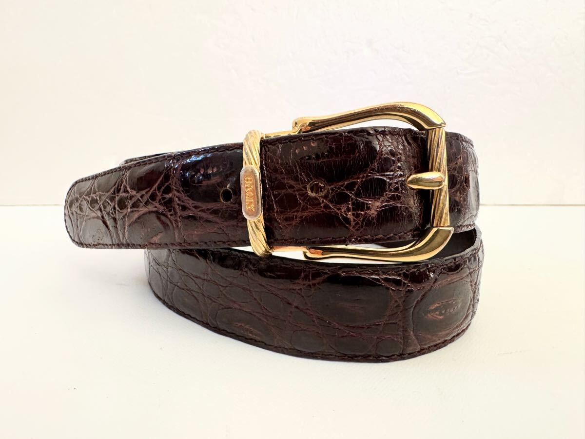 > BALLY size90くらい イタリア製クロコダイルレザーベルト ダークブラウン ゴールドバックル バリー