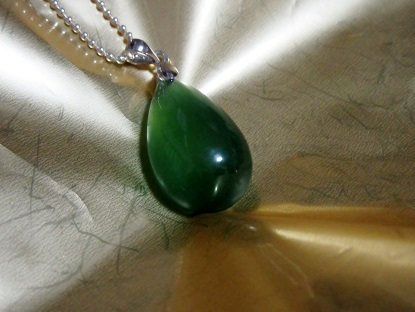 - 癒しと旅の守護石!濃いモスグリーンカラーの雫型・サーペンティンのシルバーネックレス