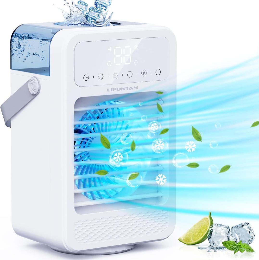 - 冷風機 LIPONTAN 卓上 冷風扇 クーラー 強力 静音 小型ミニ 「一台5役」送風 加湿 冷却機能 ナイトライト機能 1-8時間タイマー タワー