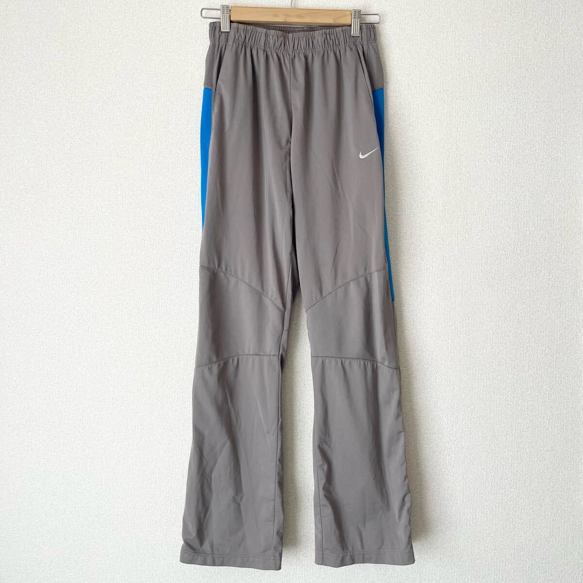> ナイキ ジャージ トラックパンツ L★ポリエステル スポーツ NIKE グレー ブルー FIT DRY★y2k 平成 古着好き ランニング トレーニング 裾広
