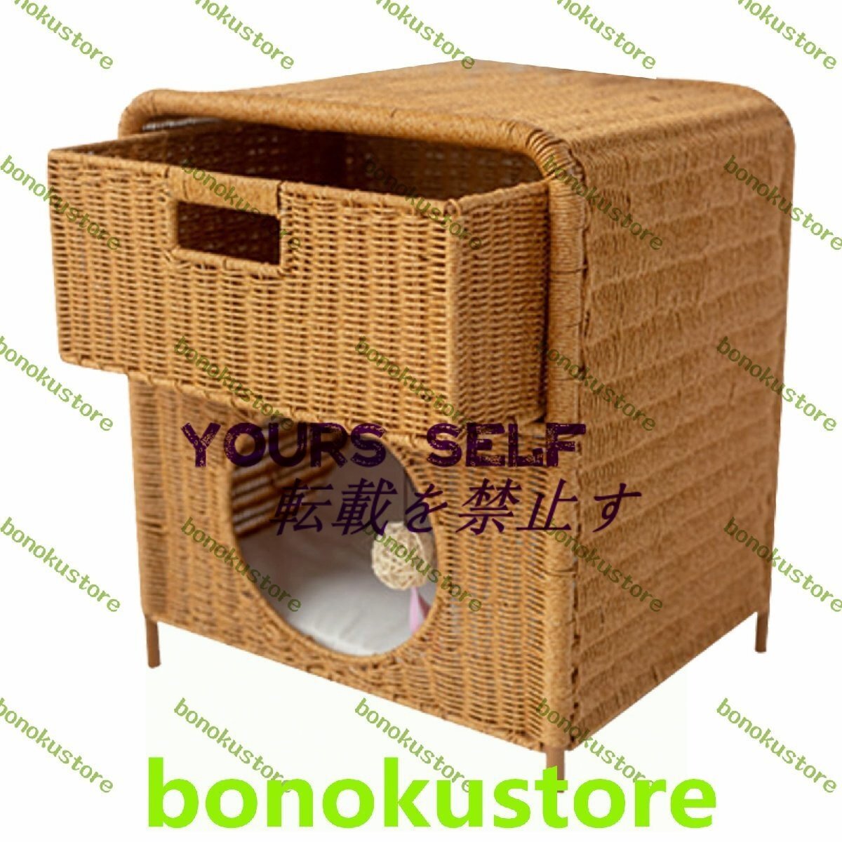 - キャットハウス サイドテーブル 猫ちぐら ペットハウス ベッドサイドテーブル 籐猫の巣 猫ベッド 猫ハウス 籠 猫用 ベッド 丸洗い