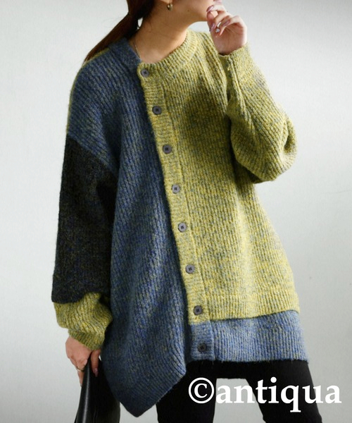 - ●美品 antiqua アンティカ patterntorso ニットカーディガン クレイジーパターン マルチカラー サイズF