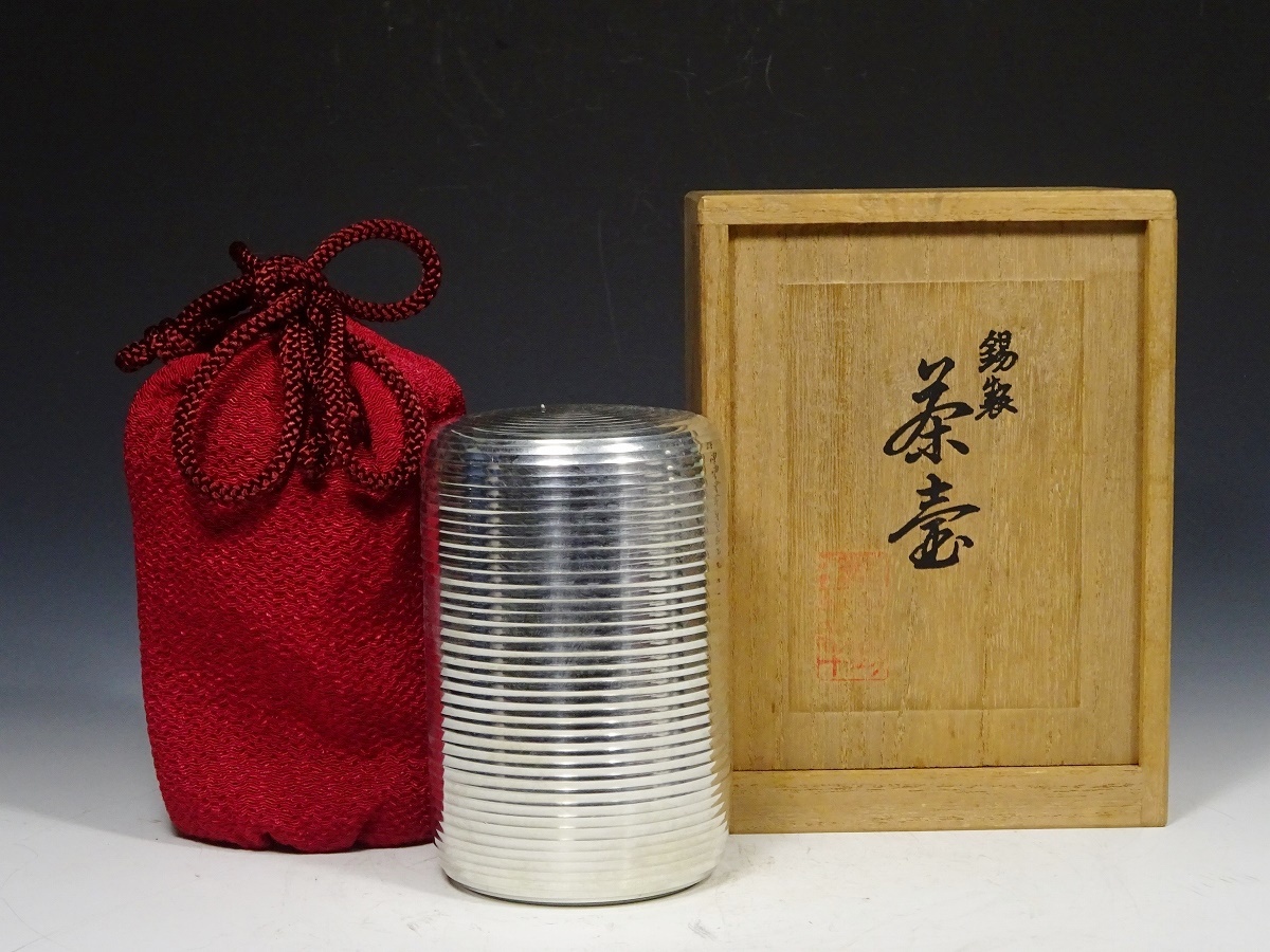 - 6■本錫 錫半 茶壷 茶筒 茶入 茶壺 仕覆 共箱 茶道具 煎茶道具