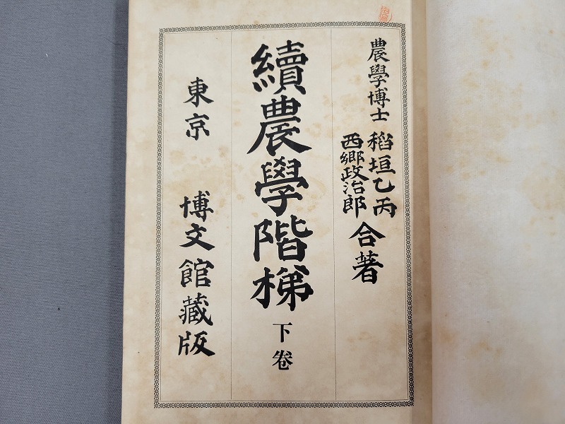 - 明治37年発行 続農学階梯 下巻 稲垣乙丙/西郷政次郎 博文館 当時物 古書 /G