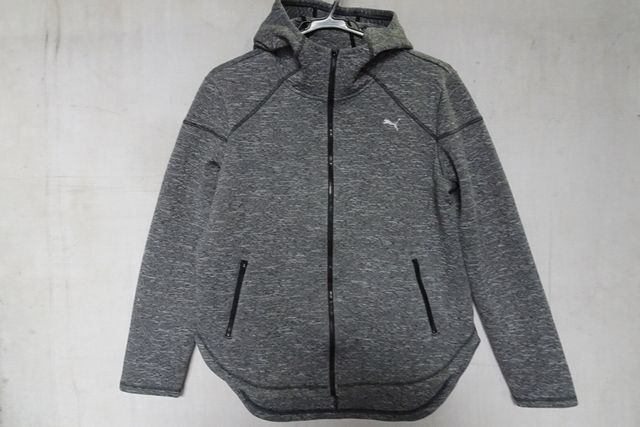 - PUMA/プーマ/長袖パーカ/スウェット素材/ギザギザキルティングステッチ/前ジップアップ/ポケットファスナー付/グレー杢/USサイズL(5/2R7)
