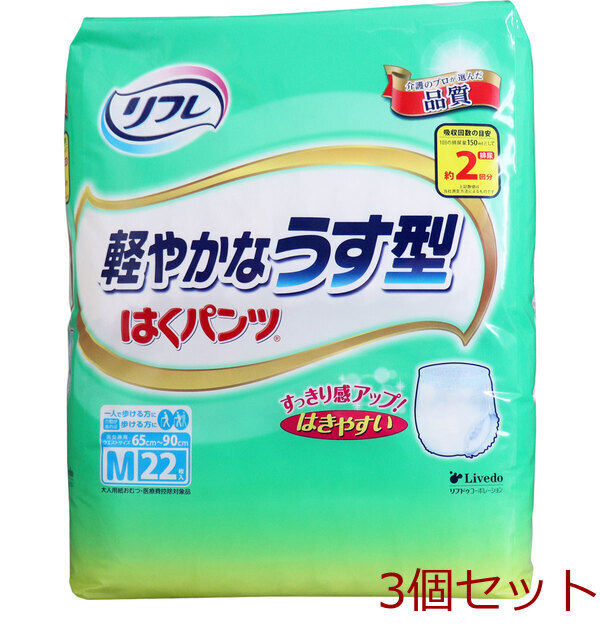 - リフレ はくパンツ 軽やかなうす型 Mサイズ 22枚入 3セット