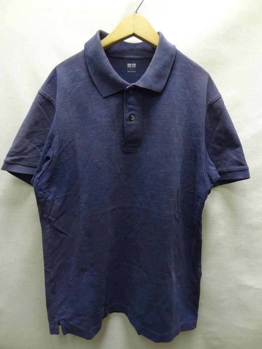 - 全国送料無料 ユニクロ UNIQLO メンズ 鹿の子素材 半袖 杢ネイビー 紺色 ポロシャツ Lサイズ