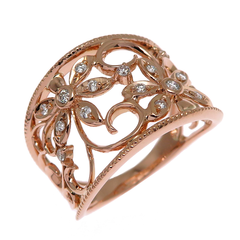 - [飯能本店]Non Brand ノンブランド 0.16ct ダイヤモンド フラワーモチーフ リング・指輪 K18ピンクゴールド 13号 レディース DH86984