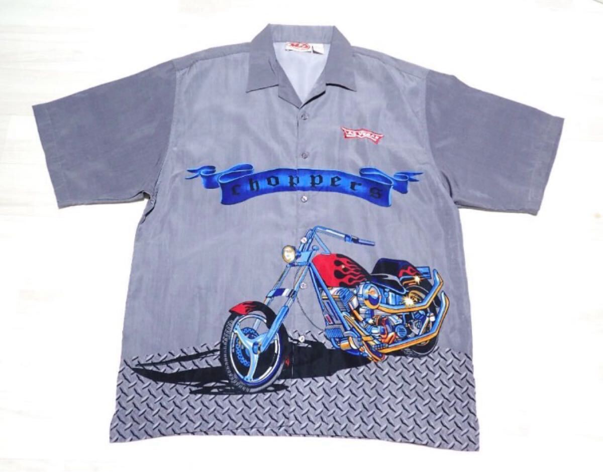 > ☆バイクデザインが超絶かっこいい!! ☆Malibu Dreams ☆バイクウエア ☆オープンカラーシャツ ☆半袖シャツ ☆グレー ☆XL