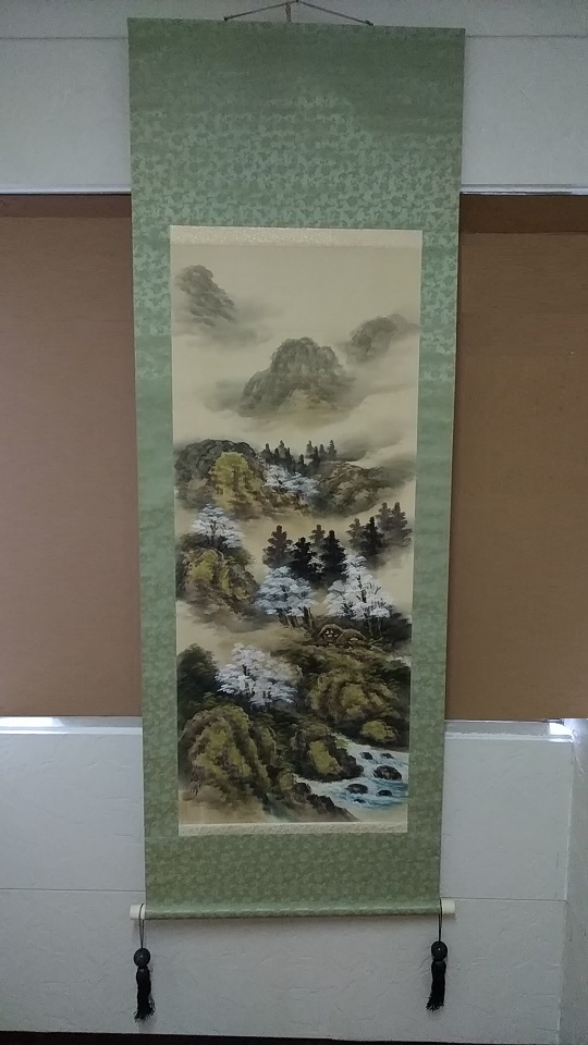 - ☆☆【美術 鑑賞 掛軸】掛け軸 彩色山水図 白洲 絹本/軸装 インテリア アート 掛け軸☆☆