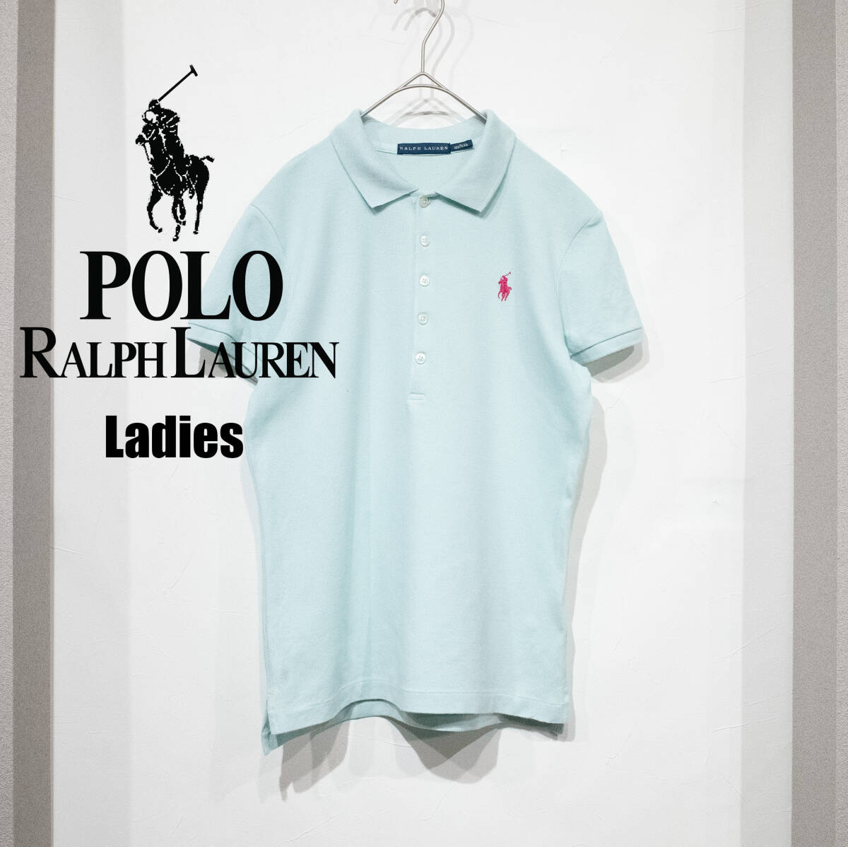 > 【レディース】L 160cm / 90s RALPH LAUREN オールド ラルフローレン 半袖 ポロシャツ 鹿の子 ポニー ロゴ刺繍 ミント グリーン 古着