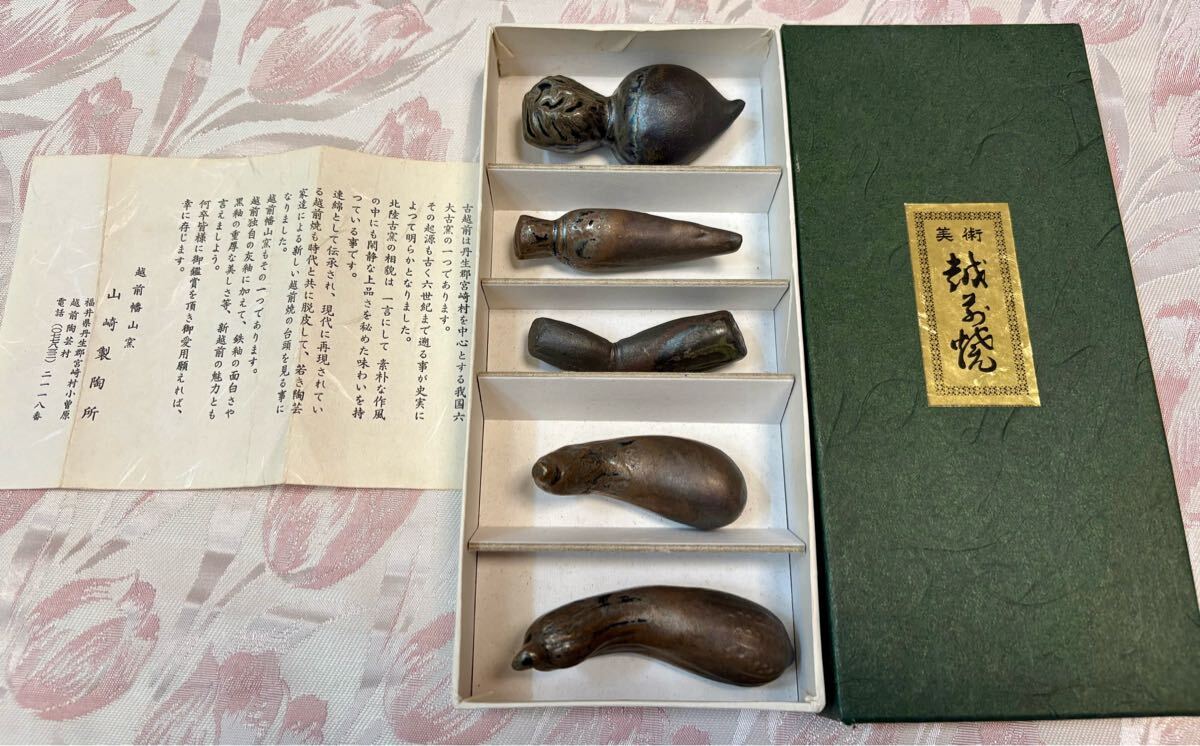 - 越前焼 箸置き 野菜 アンティーク 越前幡山窯 山崎製陶所 福井県丹生郡宮崎村小曽原 越前陶芸村 美術品