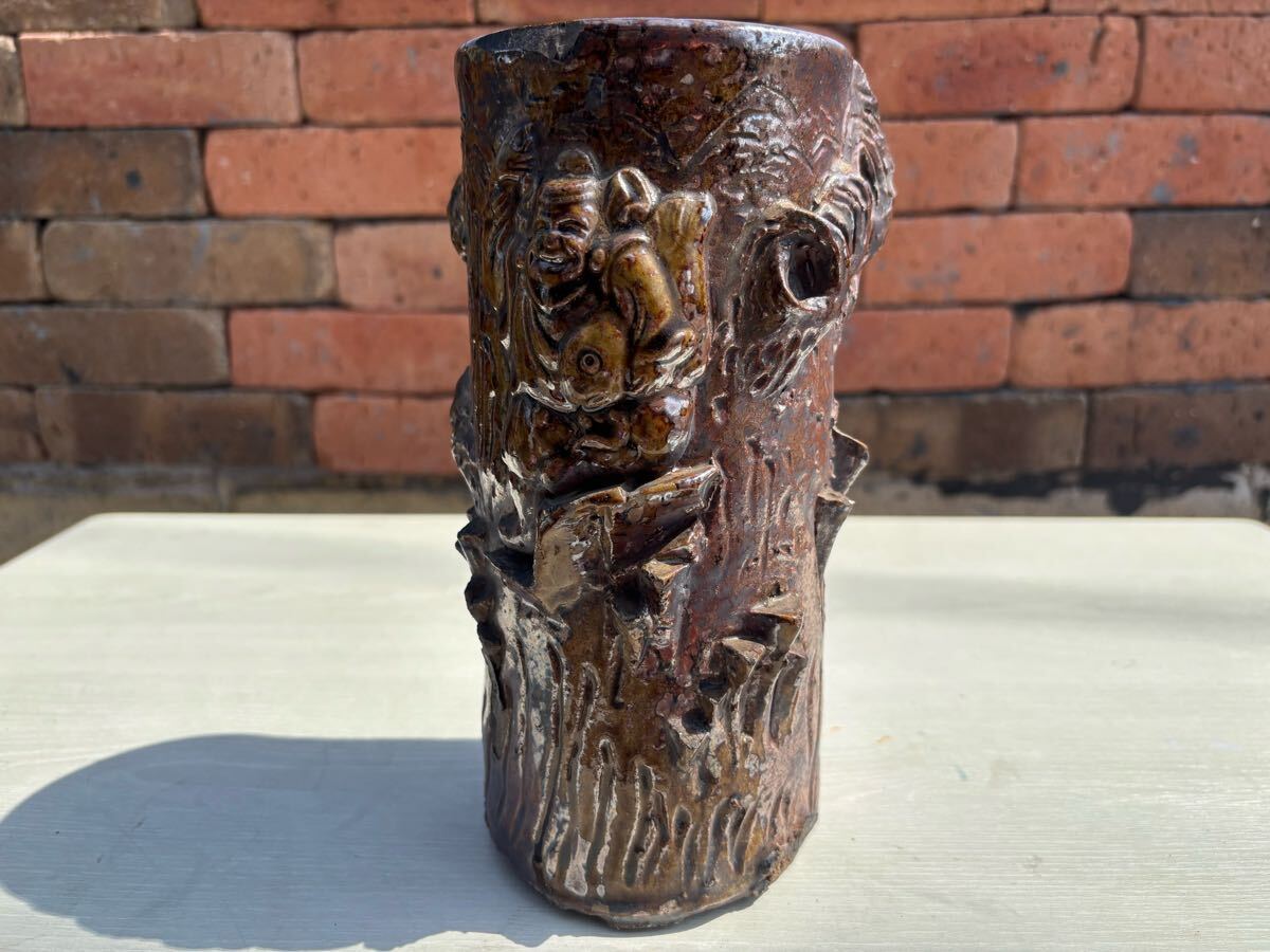 - 古備前 花瓶 花差し 置物 カケが有ります