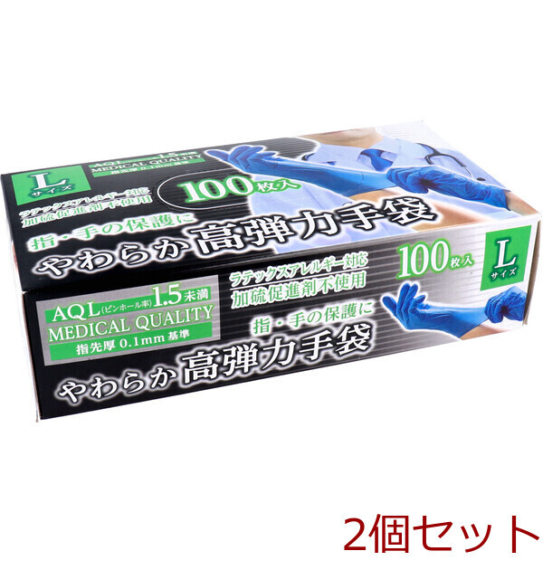 - やわらか高弾力手袋 ビニール素材 ノンパウダー Lサイズ 100枚入 2セット