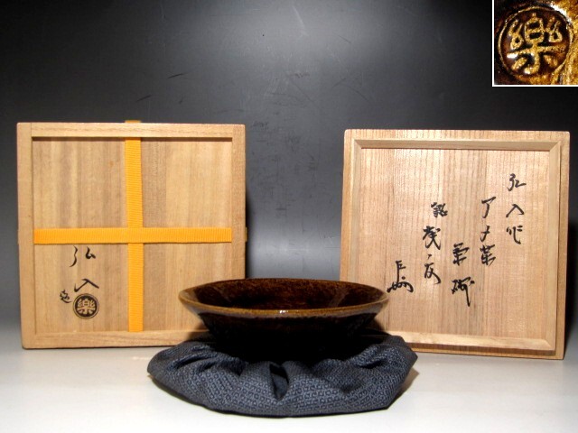 - 楽十二代 弘入(隠居印)あめ釉茶碗「庵の友」表千家即中斎花押の名品z367