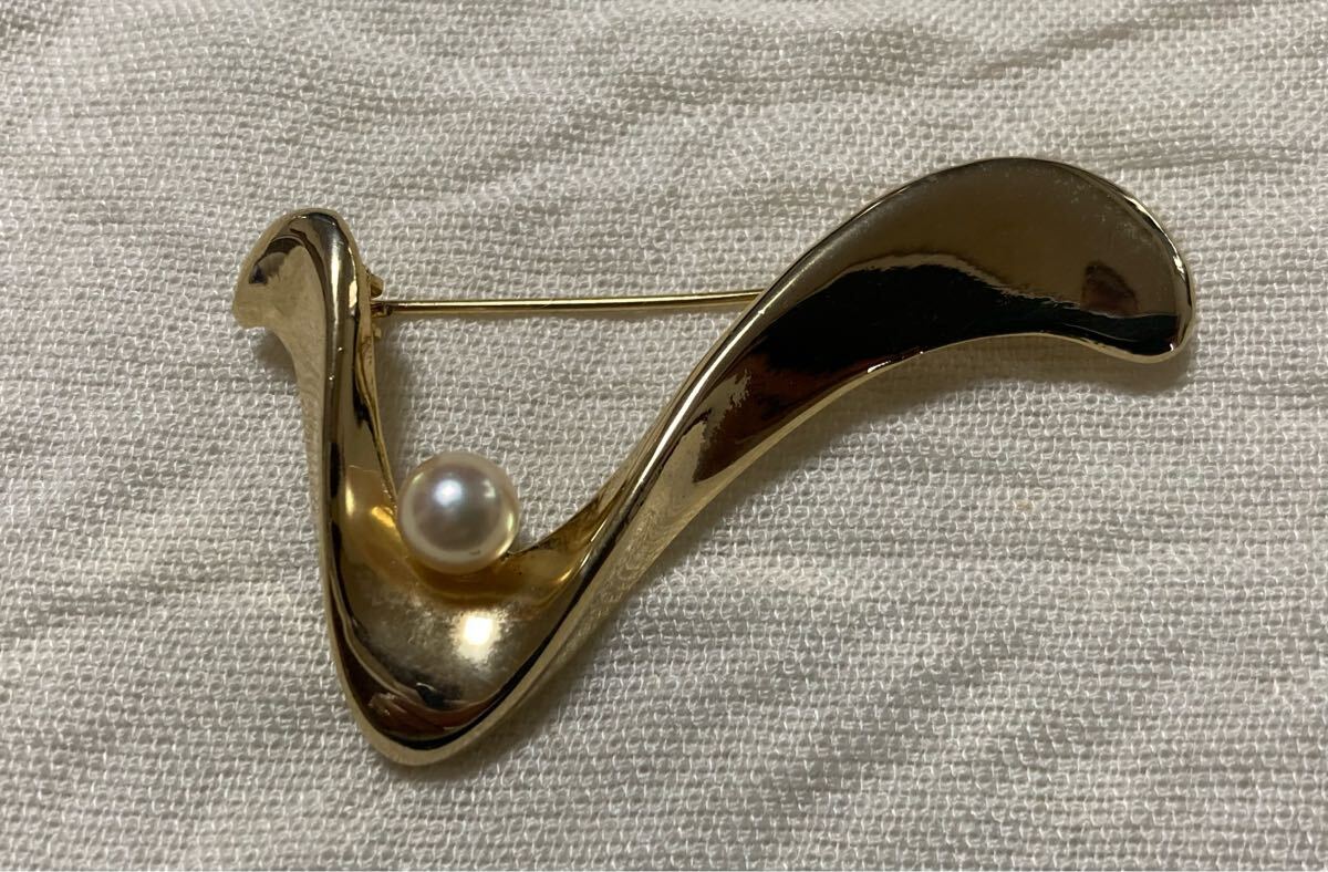 - 未使用★天然本真珠パール 金メッキ ゴールド ブローチ