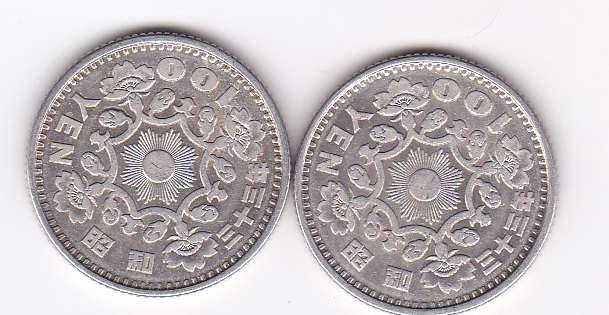- ●●●鳳凰100円銀貨 昭和33年 2枚★