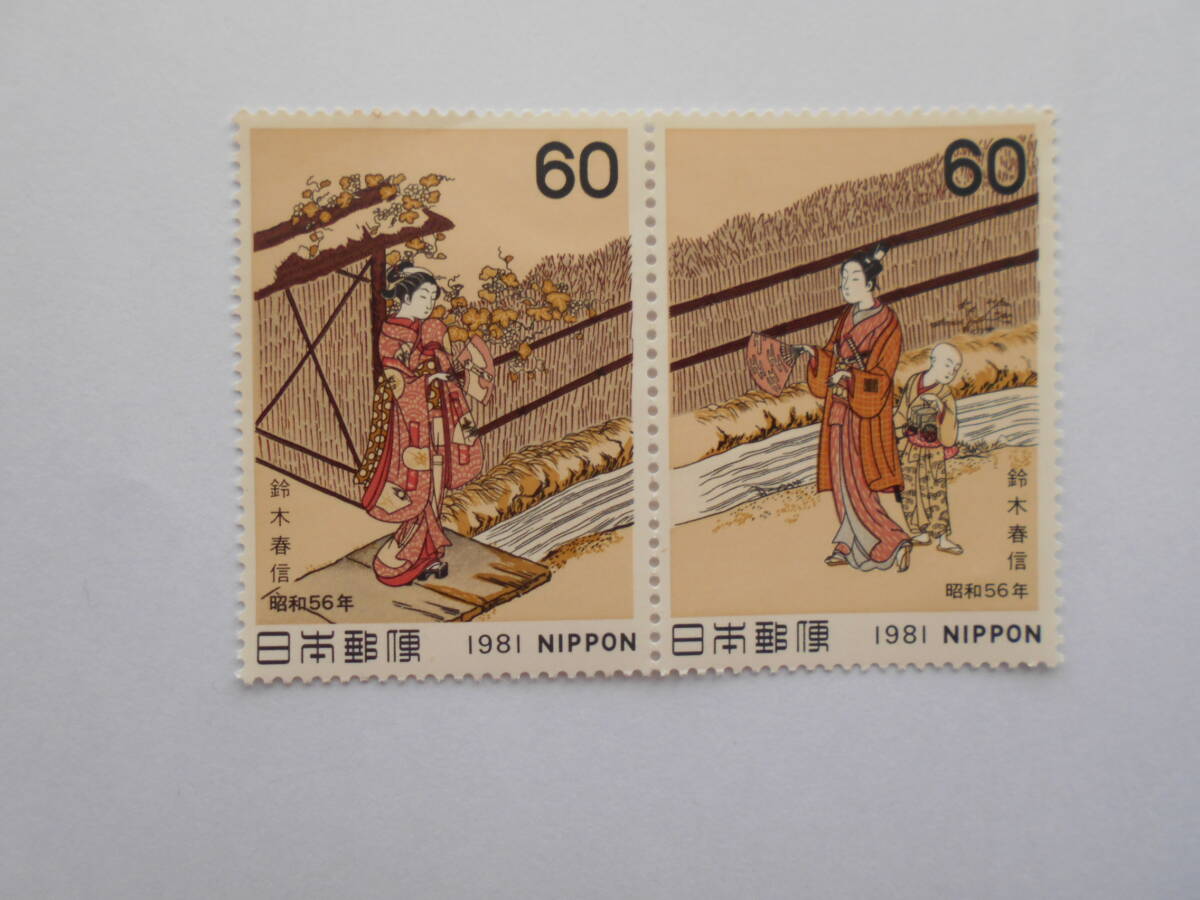 - 趣味週間 夕顔 1981 未使用60円切手2種連刷