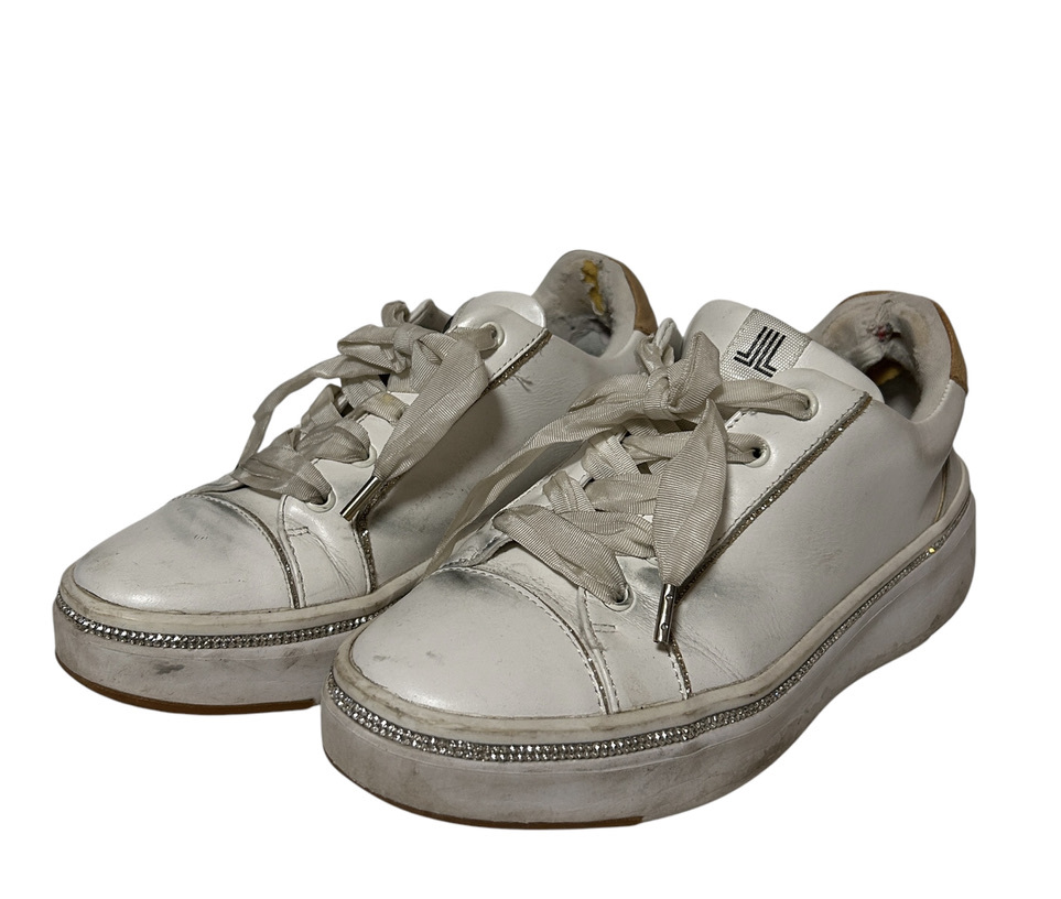 - 難有り▽LANVIN ランバン ラインストーン レザー スニーカー 23cm 白 ホワイト