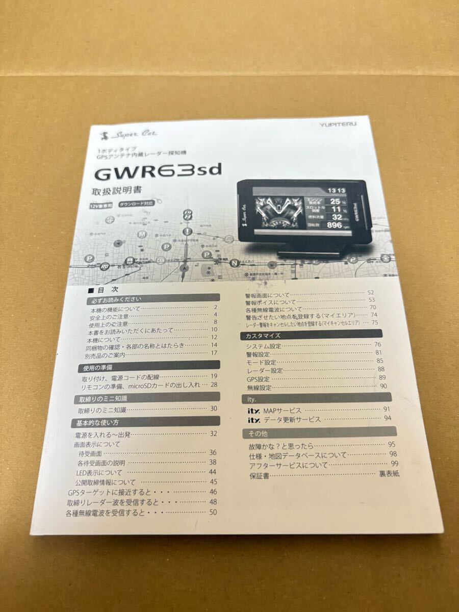 - スーパーキャット GWR63sd 取説 レーダー探知機 取扱書 取扱説明書 送料無料