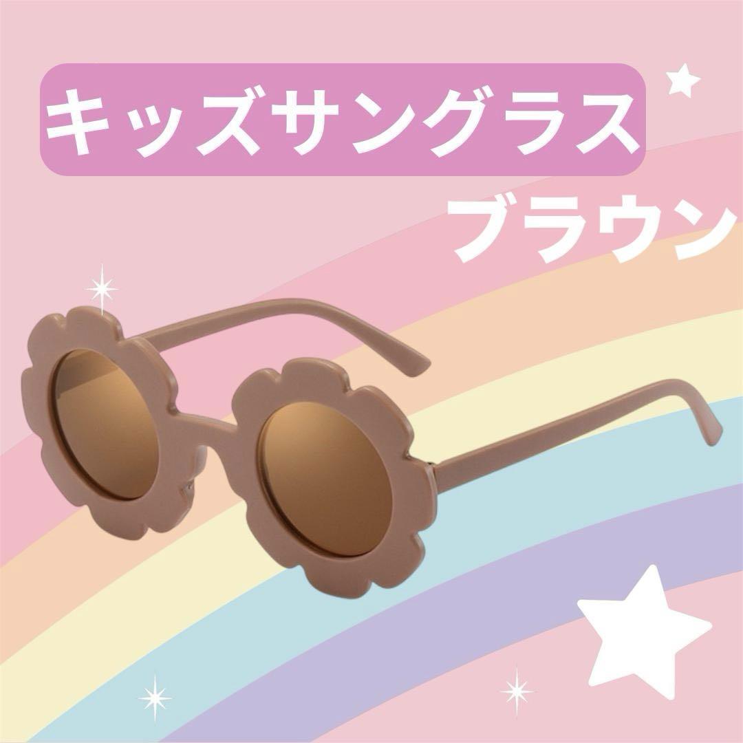- キッズサングラス 子ども用 ブラウン 花モチーフ 紫外線対策 UVカット