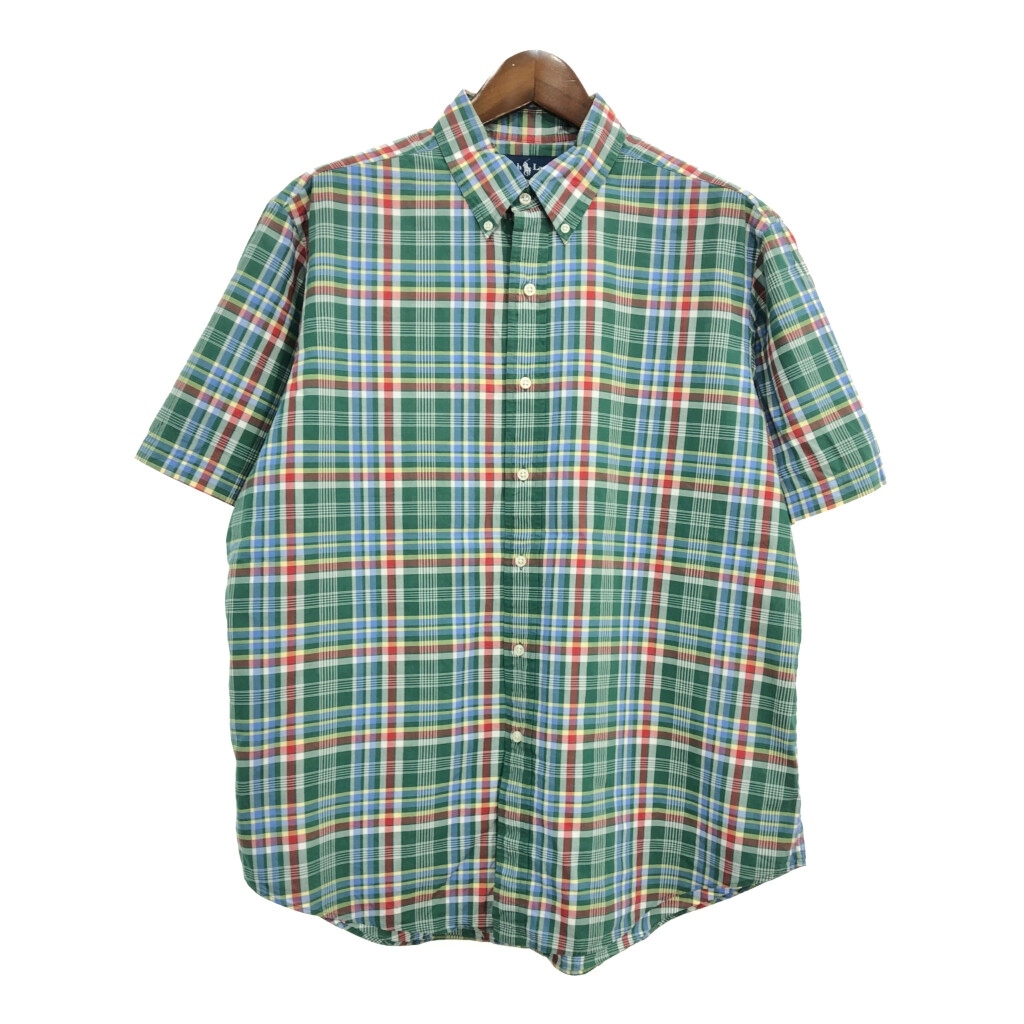 > RALPH LAUREN ラルフローレン ボタンダウン 半袖シャツ チェック グリーン(メンズ XL)中古 古着 U0487