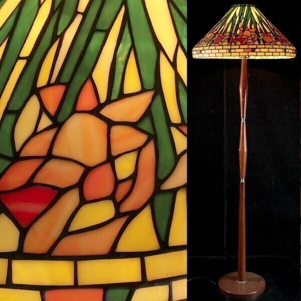 - 【爨】古美術品 草花模様ステンドグラス ランプ 155cm アンティーク [V208.4]Ti4/22.6廻/FM/(170.240)