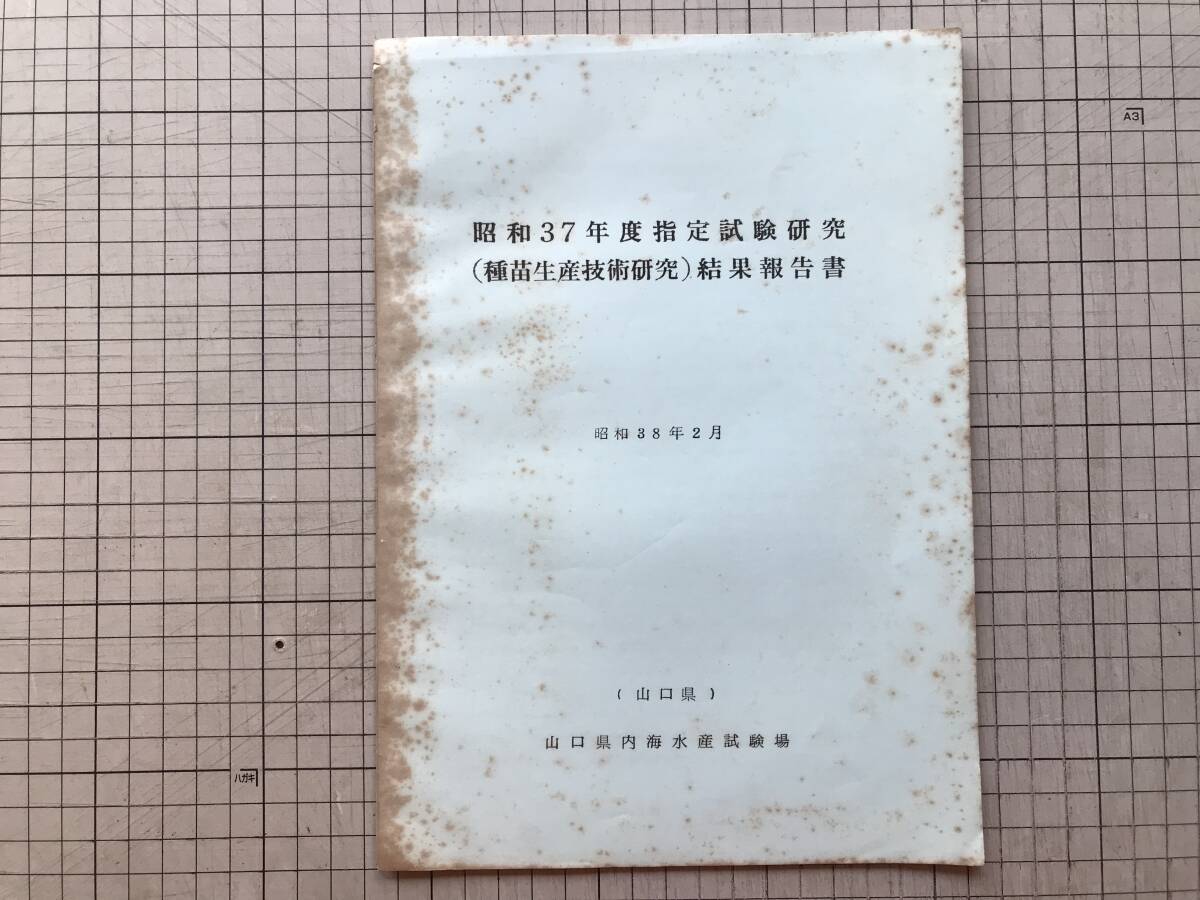 > 『昭和37年度指定試験研究(種苗生産技術研究)結果報告書』クルマエビ 山口県内海水産試験場 1963年刊 ※養殖・沿岸漁業振興 他 00213
