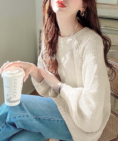 > 新品・未使用♪ moment+≪モーメントプラス≫♪クルーネック/シアーニットプルオーバー/サマーニット♪サイズM♪ベージュ♪