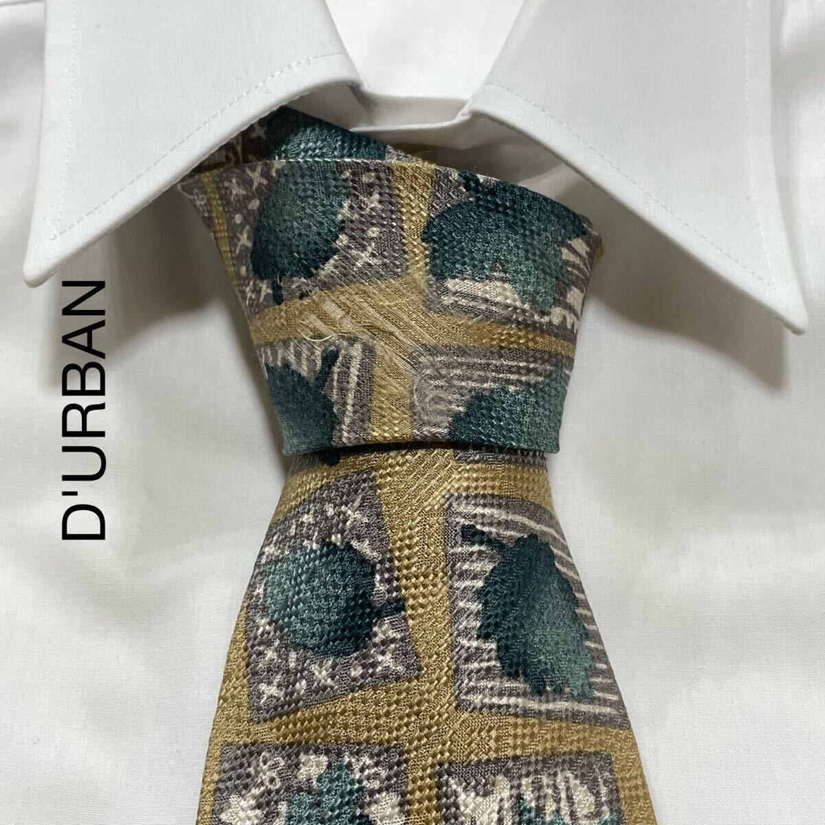 - D'URBAN ダーバン リーフ パターン柄 デザイン シルク ネクタイ ベージュ グリーン グレー ホワイト TG1392